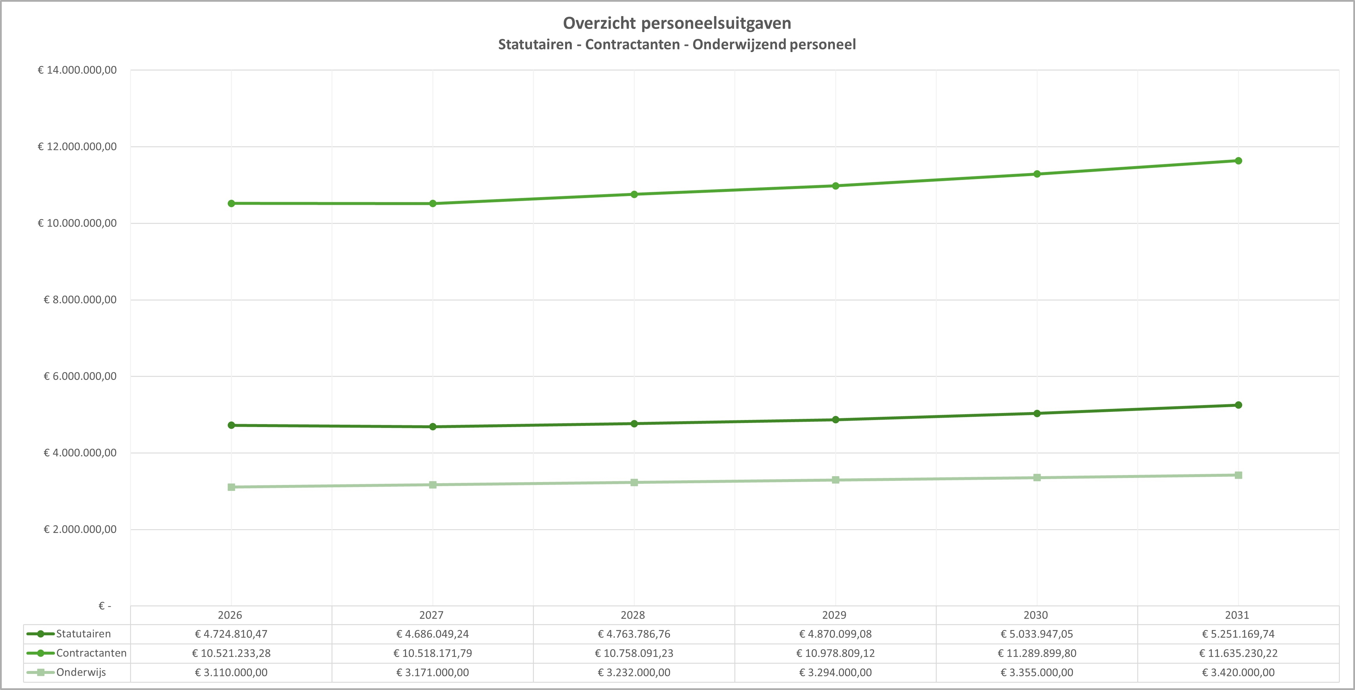 Grafiek 1 : overzicht personeelsuitgaven voor statutairen, contractanten en onderwijzend personeel