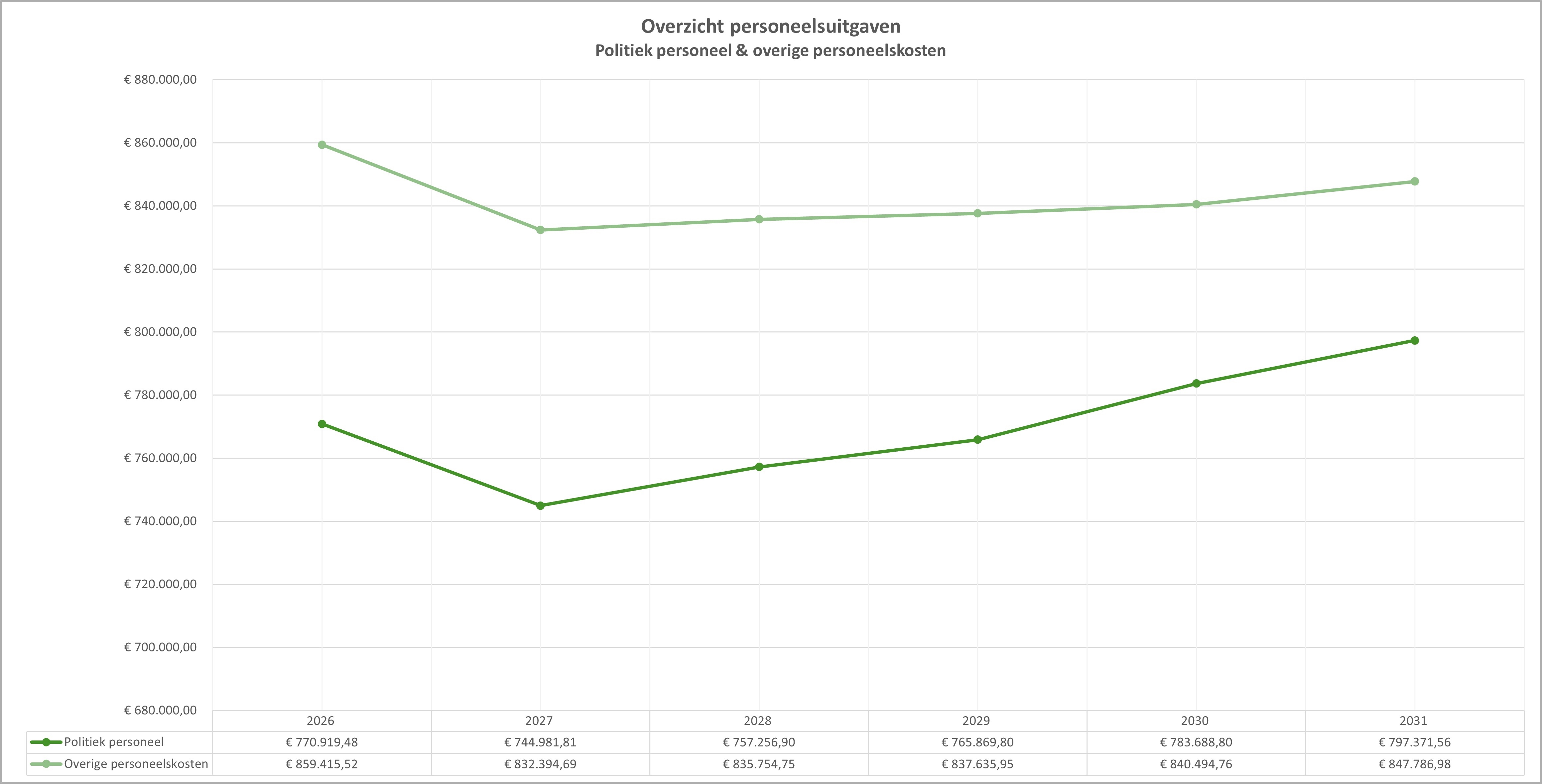 Grafiek 2: overzicht personeelsuitgaven voor politiek personeel en overige personeelskosten