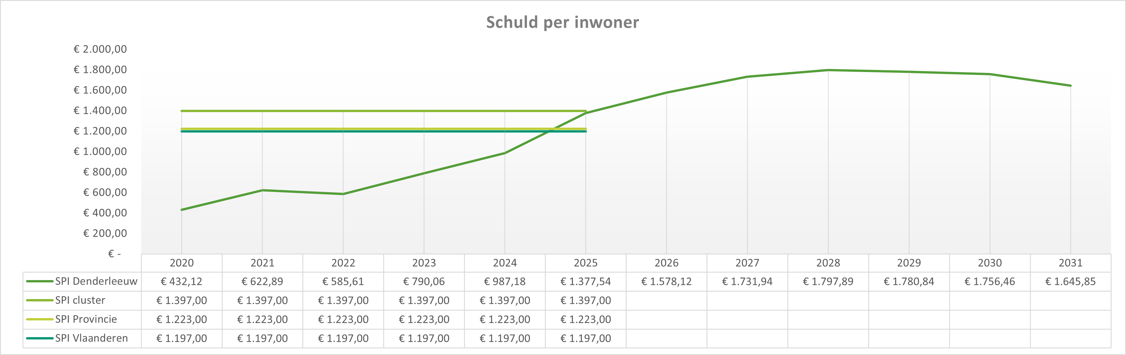 • Maximale schuld per inwoner (Vlaams gemiddelde volgens de jaarlijkse Belfius studie)