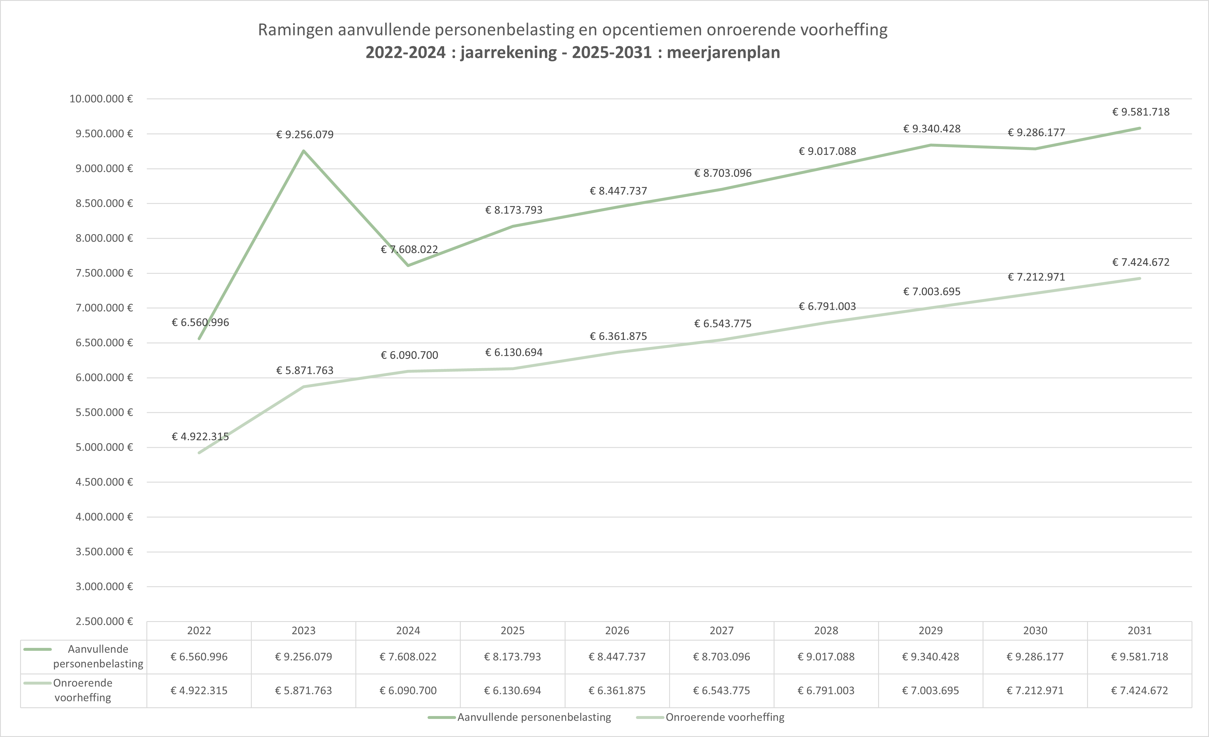 Het lokaal bestuur houdt in haar raming reeds rekening met een verhoging van de opbrengsten op basis van wooneenheden die reeds vergund zijn en momenteel in opbouw. De extra inkomsten in de aanvullende personenbelasting werden geraamd op basis van het mediaan inkomen.