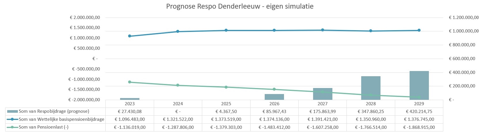 Voorgaande beslissing zal op middellange termijn ook bij lokaal bestuur Denderleeuw voor een ‘pensioentekort’ zorgen (meer uitbetaalde pensioenen dan er bijdragen worden betaald) omwille van de steeds kleiner wordende basis (het aantal statutaire ambtenaren dooft langzaam uit: de pensioenbijdrage wordt berekend op hun jaarlijkse brutoloon). Hiervoor zal dan een responsabiliseringsbijdrage betaald moeten worden. Deze extra (tijdelijke) kost weegt echter niet op tegen de besparingen die verwezenlijkt worden door uitsluitend contractuele personeelsleden aan te werven.