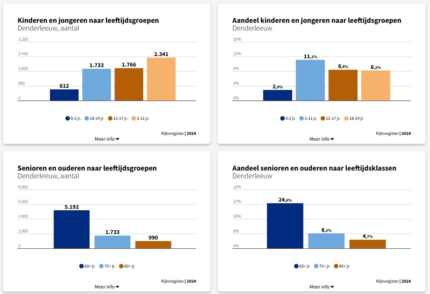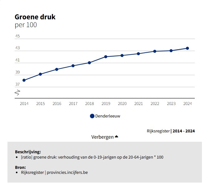 Uit recente cijfers blijkt dat de meeste Vlaamse gemeenten geconfronteerd zullen worden met zowel een vergroening en tegelijk een vergrijzing van de bevolking. Dit betekent dat het aandeel van jongeren en ouderen zal toenemen, in vergelijking met het aantal inwoners die tot de middengroep behoren (actieve bevolking).