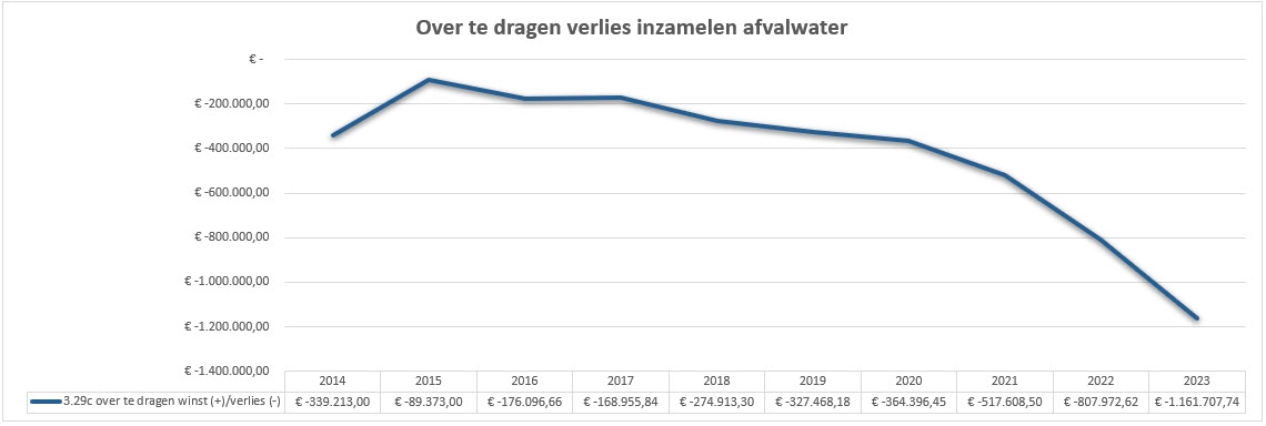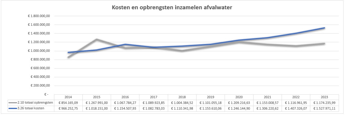 Uit onderstaande grafieken blijkt dat de kosten voor verzamelen en verwerken van afvalwater jaarlijks hoger zijn dan de opbrengsten, en dat de waarde van het netwerk jaarlijks toeneemt.