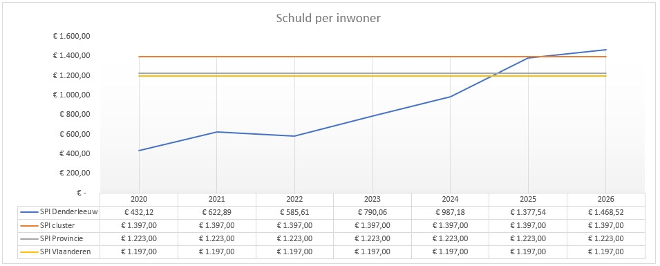 • Maximale schuld per inwoner van 1.200 euro (Vlaams gemiddelde)