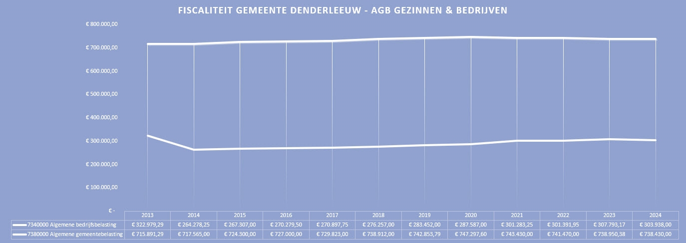 • De opbrengsten van de AGB gezinnen en bedrijven is vrij stabiel.
