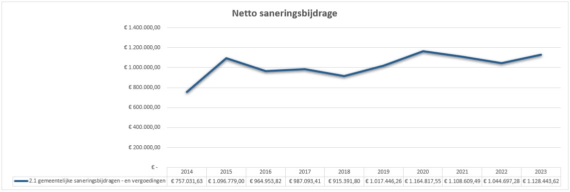 De gemeente moet erop toezien dat de saneringsbijdragen die ontvangen worden van de inwoners via de drinkwaterfactuur aangewend worden voor de organisatie van opvang van afvalwater. Jaarlijks wordt gemonitord (op basis van de rapportering van kosten, opbrengsten en overgedragen resultaten aan de VMM) in welke mate dit het geval is.