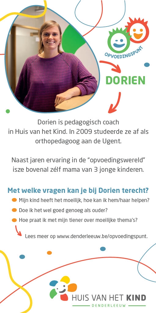 Opvoedingsondersteuning is één van de basispijlers van de Huizen van het Kind. We willen verder investeren in de uitbouw van het Opvoedingspunt, waar gezinnen met kinderen van 0 tot 25 jaar terecht kunnen met elke vraag rond opvoeden en opgroeien. We willen dit Opvoedingspunt meer bekend maken bij de gezinnen via belangrijke toeleiders zoals opbouwwerkers, maatschappelijk werkers, ...