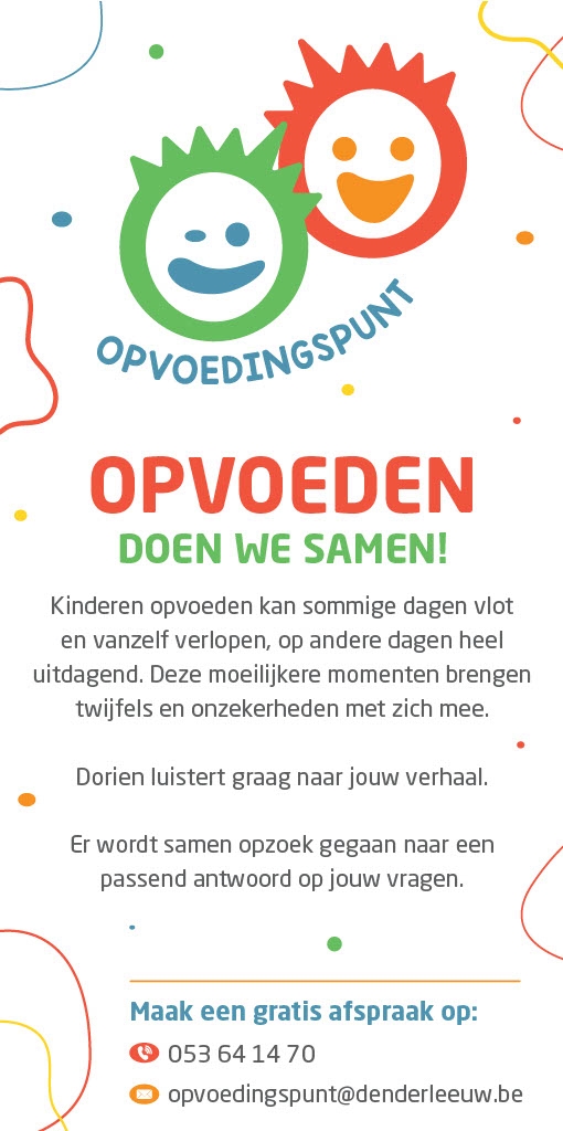 Ook in het voorjaar van 2025 heeft de pedagogisch coach ingezet op de verdere bekendmaking van het Opvoedingspunt. Belangrijke toeleiders zoals onze onderwijsopbouwwerkers zorgen er mee voor dat het Opvoedingspunt zichtbaar wordt aan de schoolpoorten, op belangrijke schoolactiviteiten zoals oudercontacten, schoolfeesten en andere bijeenkomsten. Ook de begeleiders van de buitenschoolse kinderopvang verwijzen gericht door wanneer ouders bij hen komen met opvoedingsvragen. Wanneer onze onthaalbediende mensen ontvangt en rondleidt, zal ze hen ook steeds het bestaan van deze dienstverlening meegeven.